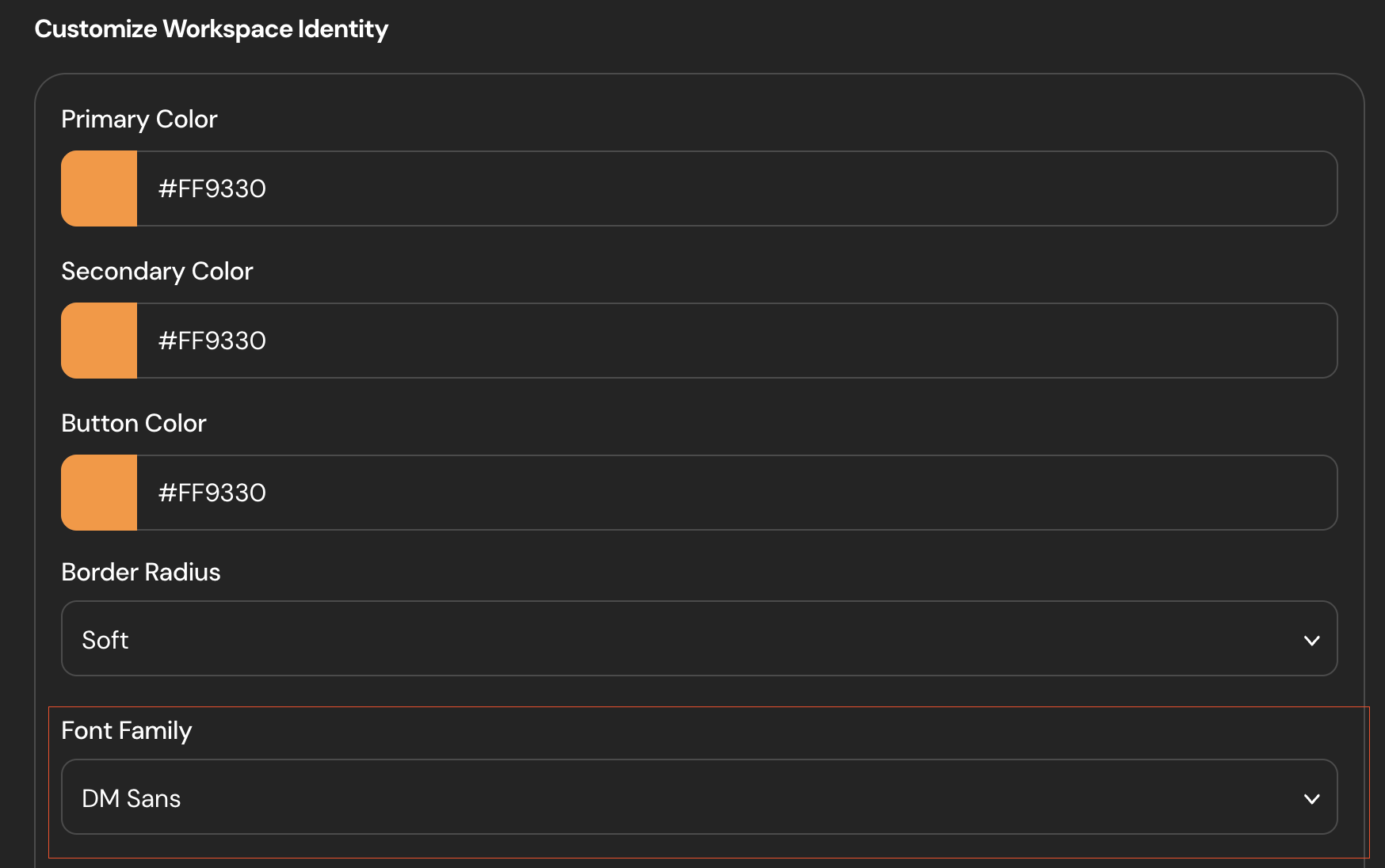 Scroll down until you find the "Customize Workspace Identity". There, you'll see "Font Family". Choose one of our ten available options and save!