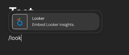 Go to the page or post in your Haystack Workspace that you want to add this to and begin typing "/looker" (see image below). Click on that pop up.