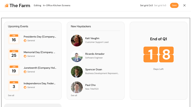 Digital Signage by Haystack allows you to turn any screen in your office into a dynamic hub of information. By broadcasting real-time updates, celebrating milestones, and sharing essential news, you can ensure your deskless and on-site employees stay connected to the heartbeat of your organization. Whether it’s a lobby display or a breakroom monitor, Haystack makes it easy to bridge the gap between your digital workspace and your physical office.