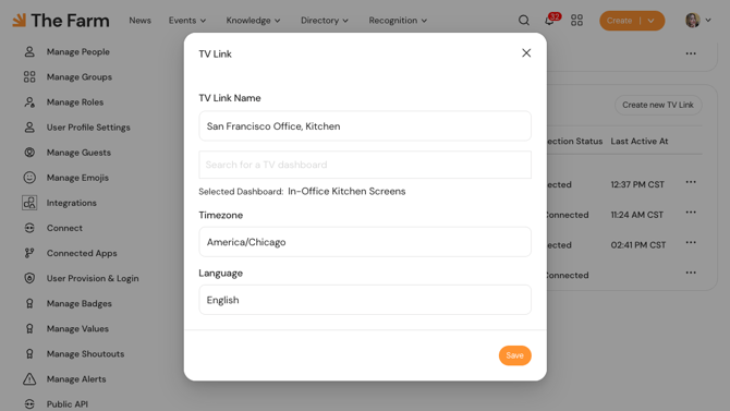 Once your dashboard is designed, it’s time to go live. Scroll down to the TV Links section to connect your digital dashboards to the physical hardware in your workspace.