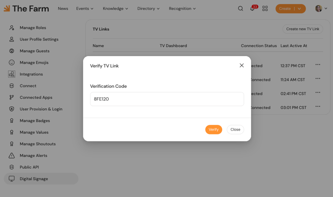- The TV will take a minute to sync and then display the TV Link you just verified! Your digital signage dashboard is live!