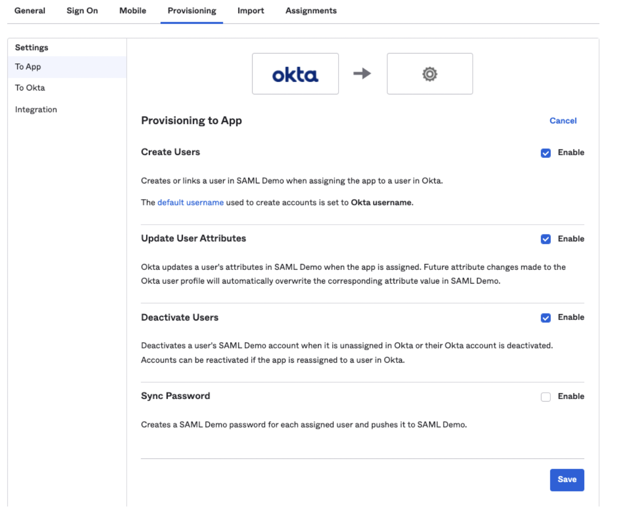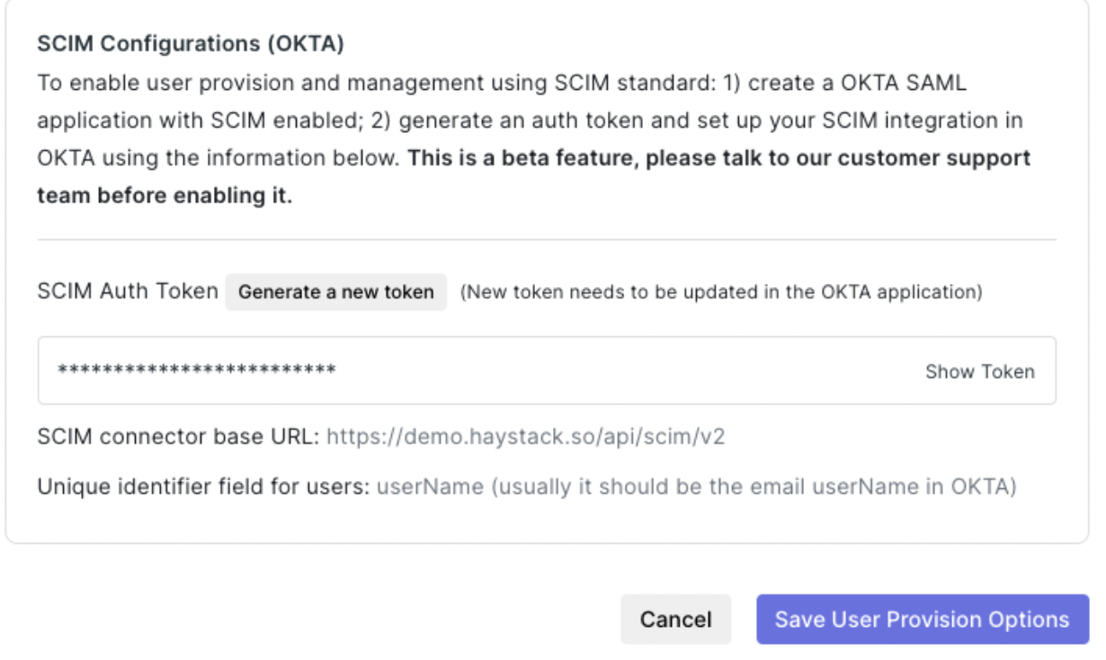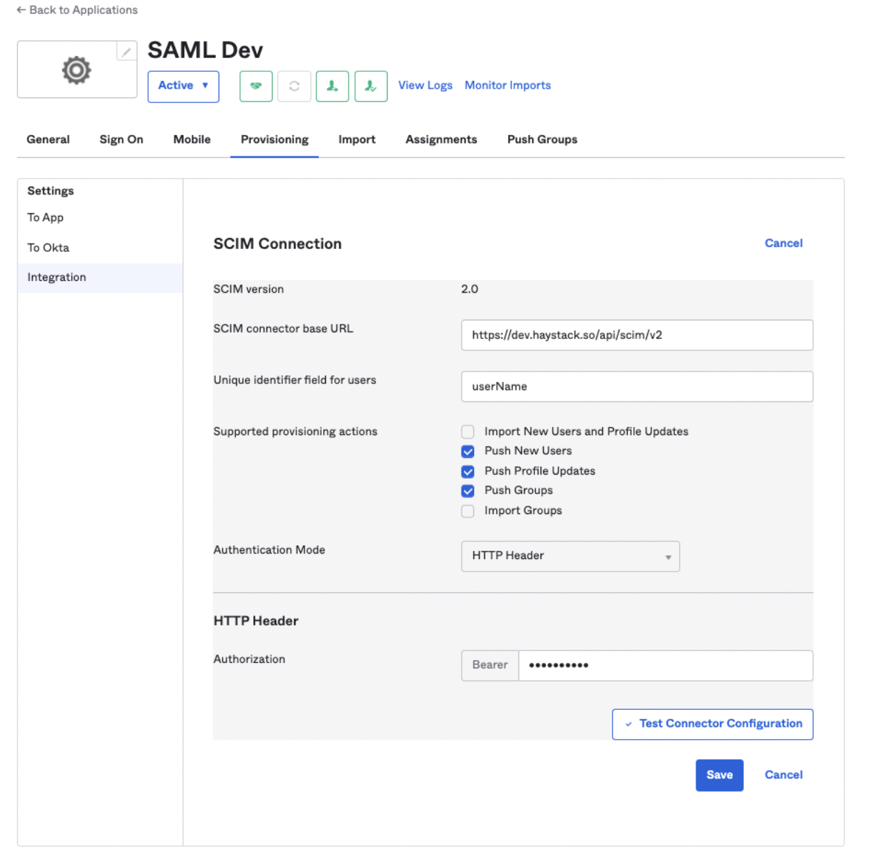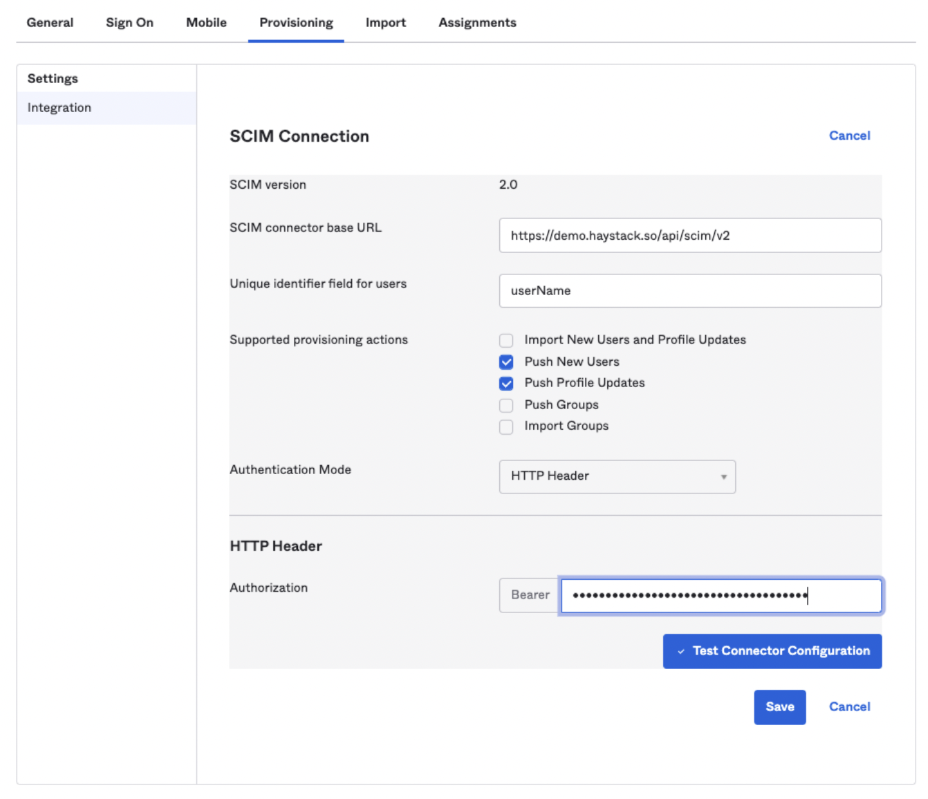 This ensures that users are automatically created, updated, and deactivated in Haystack as their status changes in Okta. Don't forget to save these settings.