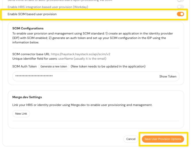 Phase 1: Enable SCIM in Haystack