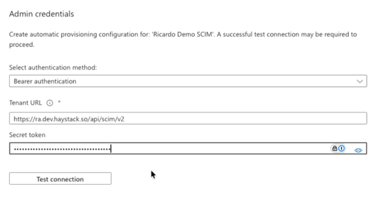 - Tenant URL: Paste your Haystack SCIM URL.